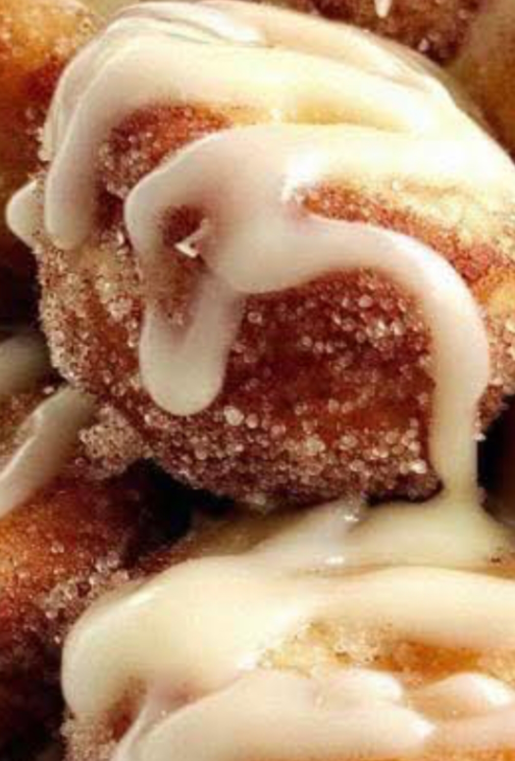 INTRODUCTION:These cinnamon sugar donut holes are the perfect sweet treat for breakfast or dessert. Soft, fluffy, and coated in cinnamon sugar, they are then drizzled with a rich glaze for an irresistible finish. Easy to make and loved by everyone, these donut holes will quickly become a family favorite!INGREDIENTS:For the donut holes:1 1/2 cups all-purpose flour1/2 cup granulated sugar1 1/2 teaspoons baking powder1/2 teaspoon salt1/2 teaspoon cinnamon1 large egg3/4 cup whole milk1 teaspoon vanilla extract2 tablespoons unsalted butter, melted2 cups vegetable oil (for frying)For the cinnamon sugar coating:1/2 cup granulated sugar1 tablespoon ground cinnamonFor the glaze:1/2 cup powdered sugar2 tablespoons milk1/2 teaspoon vanilla extractINSTRUCTIONS:Make the donut hole batter:In a large mixing bowl, whisk together the flour, sugar, baking powder, salt, and cinnamon.In a separate bowl, whisk the egg, milk, vanilla extract, and melted butter together until well combined.Gradually add the wet ingredients to the dry ingredients, stirring until just combined. Be careful not to overmix.Heat the oil:In a deep pot or skillet, heat the vegetable oil over medium heat to 350°F (175°C). Use a thermometer to ensure the oil stays at the correct temperature for frying.Fry the donut holes:Carefully drop spoonfuls of batter into the hot oil, working in small batches to avoid overcrowding. Fry for about 2-3 minutes, or until the donut holes are golden brown and float to the surface.Use a slotted spoon to remove the donut holes and place them on a plate lined with paper towels to drain excess oil.Coat with cinnamon sugar:In a small bowl, mix the granulated sugar and cinnamon for the coating.While the donut holes are still warm, roll them in the cinnamon sugar mixture to coat evenly.Make the glaze:In a small bowl, whisk together the powdered sugar, milk, and vanilla extract until smooth and drizzly.Drizzle the glaze over the cinnamon sugar donut holes.Serve:Serve the donut holes warm and enjoy with a cup of coffee or milk!These cinnamon sugar donut holes are the perfect combination of crispy on the outside and soft on the inside, with just the right amount of sweetness. Enjoy!