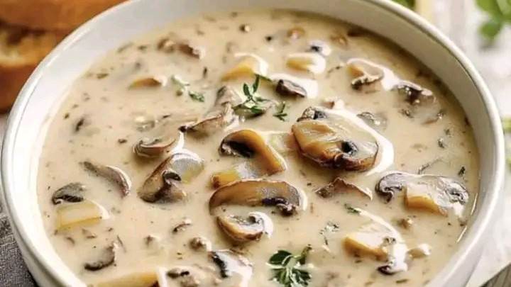 Creamy Mushroom SoupEarthy mushrooms simmered with garlic and onion in a velvety broth—simple, satisfying, and deeply flavorful.IngredientsMushrooms: 500g (about 4 cups) mixed mushrooms (cremini, button, shiitake), slicedOnion: 1 medium, finely chopped (150g)Garlic: 3 cloves, minced (9g)Broth: 4 cups (960ml) vegetable or chicken brothButter or olive oil: 2 tbspFlour: 2 tbsp (for thickening)Heavy cream: ½ cup (optional for extra richness)Fresh thyme: 1 tsp (or ½ tsp dried)Salt & pepper: to tasteFresh parsley: for garnishInstructionsSauté Aromatics: In a large pot, melt butter or heat oil over medium heat. Add onion and garlic, cook until soft and fragrant (about 5 minutes).Add Mushrooms: Stir in sliced mushrooms and thyme. Cook until mushrooms release moisture and begin to brown (8–10 minutes).Thicken: Sprinkle flour over mushrooms and stir well. Cook 1–2 minutes to eliminate raw flour taste.Add Broth: Slowly pour in broth while stirring. Bring to a gentle boil, then reduce heat and simmer for 15 minutes.Blend (optional): For a smoother texture, blend half the soup and return to pot. Skip this step for a chunkier version.Finish: Stir in cream if using. Adjust salt and pepper to taste. Simmer 5 more minutes.Serve: Ladle into bowls and garnish with fresh parsley.DetailsPrep Time: 15 minutesCook Time: 30 minutesTotal Time: ~45 minutesYield: 4 servingsKcal: ~220 per serving (with cream) Cozy, creamy, and packed with umami—this mushroom soup is a hug in a bowl.