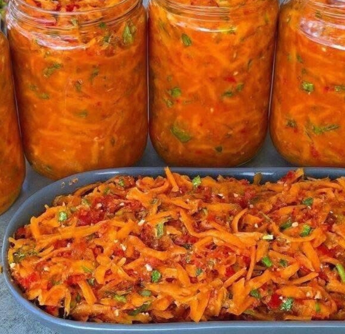 IntroductionThis vibrant grated carrot salad, often known as Korean-style carrots (Morkovcha), is loved for its crunchy texture and bold balance of tangy, spicy, and savory flavors. It’s a refreshing, budget-friendly dish that improves as it marinates.Ingredients2 lbs (1 kg) fresh carrots, peeled and grated into long thin matchsticks4–5 garlic cloves, minced or pressed1 large onion, finely chopped1/4 cup vegetable oil (sunflower or canola)2 tablespoons white vinegar (9%)1 tablespoon sugar1 teaspoon salt (adjust to taste)1 teaspoon ground coriander1/2 teaspoon cayenne pepper or red chili flakes (adjust to taste)1/4 teaspoon freshly ground black pepperFresh parsley or cilantro, choppedInstructionsPlace the grated carrots in a large bowl.Add salt and sugar, then massage gently until carrots soften slightly.Make a small well in the center and add garlic and all spices without mixing.Heat the vegetable oil in a pan and fry the onion until golden.Strain the hot oil directly over the spices and garlic on the carrots.Add vinegar and fresh herbs.Mix everything well until evenly coated.Transfer to jars and press firmly.Refrigerate for at least 3–4 hours, preferably overnight.How to MakeUse a julienne peeler or Korean carrot grater for long, thin strands.Massage carrots gently—do not crush them.Ensure oil is very hot before pouring over spices to release aroma.Pack carrots tightly in jars so juices cover them completely.Allow enough marinating time for full flavor development.VariationsAdd thinly sliced red bell peppers for sweetness and color.Mix in toasted sesame seeds and a few drops of sesame oil.Add chickpeas or toasted walnuts for extra texture.Increase heat with gochujang or fresh chilies.Replace vinegar with apple cider vinegar for a milder tang.TipsUse fresh, firm carrots for the best crunch.Avoid box graters; they ruin texture.Oil must be shimmering hot for best flavor infusion.Store in airtight glass jars in the refrigerator.Keeps well for up to 10 days.ConclusionKorean-style grated carrot salad is a bold, refreshing dish that pairs beautifully with grilled meats, rice dishes, or sandwiches. Easy to prepare and long-lasting, it’s perfect for meal prep and healthy snacking